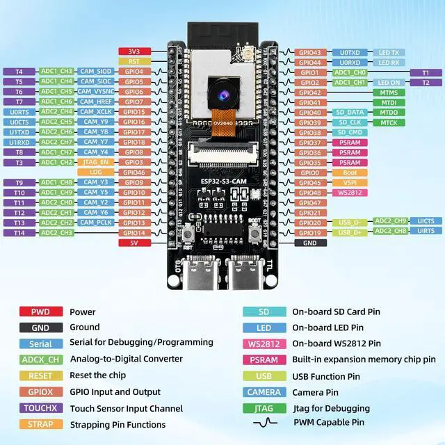 Integrated 2-megapixel OV2640 camera: Built-in OV2640 camera to capture clear images and stream video in real time. Perfect for smart surveillance, face recognition, and AI-based computer vision projects. It is the preferred solution for DIY makers and professionals to build camera-enabled IoT systems