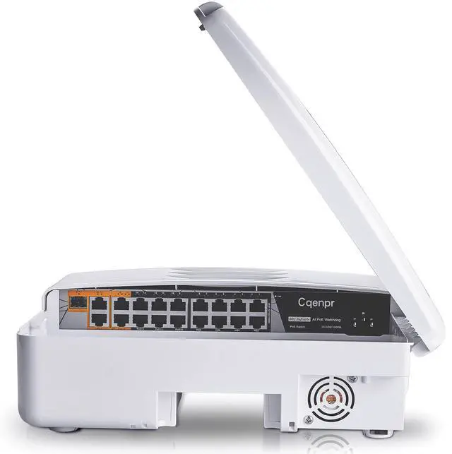 Cqenpr Outdoor 19 Port Poe Switch, IEEE802.3af/at/bt, All-in-One Box, Total 250W, High Power Output, Play & Plug, Fan Unmanaged, AI Watchdog. (19 Port All-in-one)