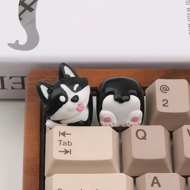 CUTE DOG DESIGN: This customized keycap set consists of a corgi-dog's head and butt, each novelty keycap is a combination of quality and detail, suitable for as a cute decoration diy your mechanical keyboard