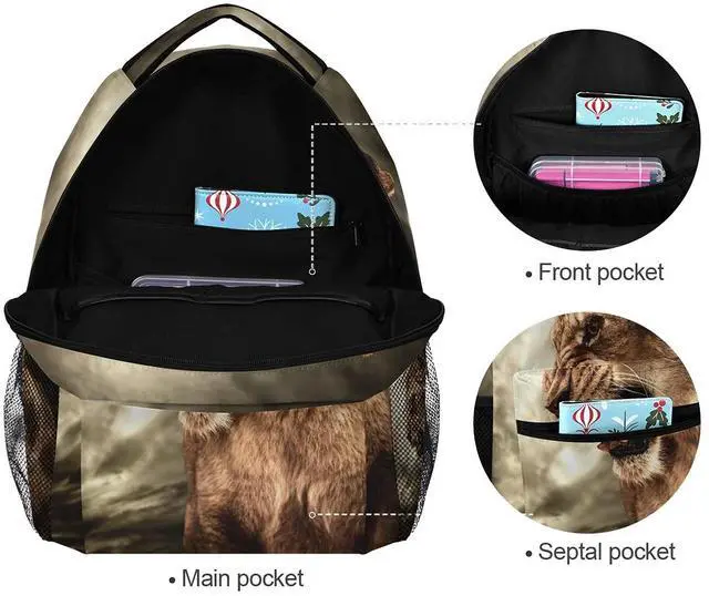 Large capacity 1 x Roomy Main Compartment. Offer a separate space for daily stuff like books, clothes, folders, kindle, magazines, etc 1 x Laptop Compartment. Holds for laptop, iPad 1 x Inner Pocket with zipper, Keep wallet, power bank, etc 2 Small Pocket, Keep pens and other writing utensils 154 x Side pockets hold water bottle & folded umbrella