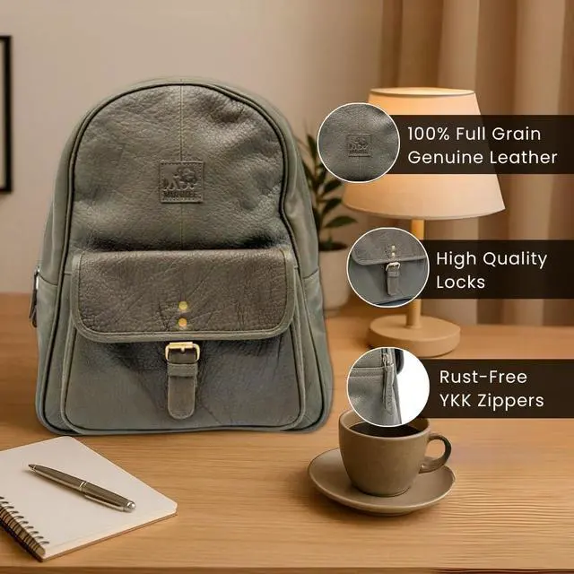 PREMIUM LEATHER & STYLISH DESIGN: Crafted from 100% genuine leather, this bag ensures durability and quality that will only get better with time. Elevate your daily commute and add a touch of sophistication to your outfit with our premium green leather backpack. Crafted from 100% genuine leather, this bag ensures durability and quality that will only get better with time.