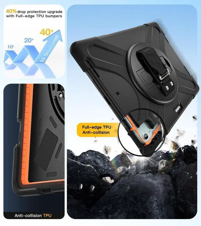 [Heavy Duty,Full-Body Military-grade Protection]This case for ipad Air 13''/Pro 12.9''(2018 to 2022) features triple-layer construction and extra orange TPU cushioning strips, the outer silicone layer reinforces the dropproof performance of all four corners, plus there are 4x shockproof sponge pads on the bottom cover to prevent scratches to your tablet.Two types of front cover are included in the package.Provides the ultimate in protection and durability, safe for kids to use.