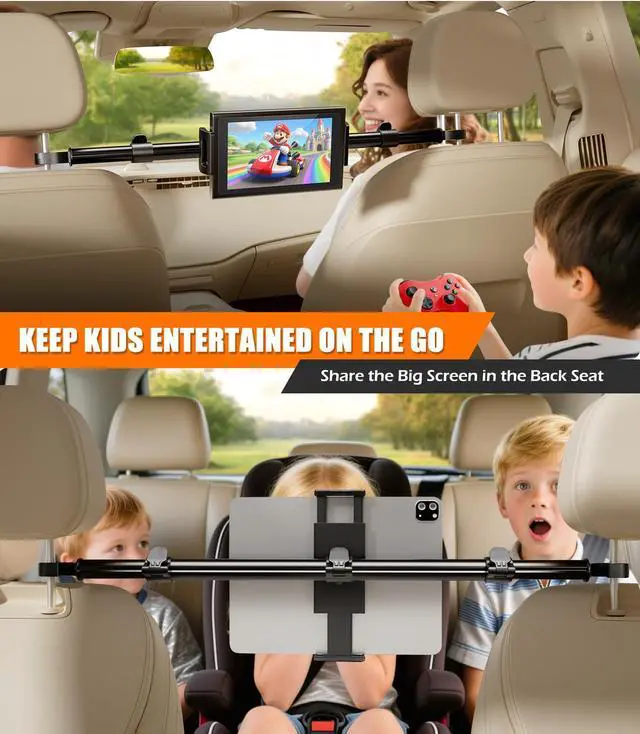 Aaeiirey Car Headrest Tablet Holder [Dual-Clamp Stability][360° Adjustable] Back Seat iPad Mount for Kids Road Trip, Compatible with 4.516. 5" iPad Pro/Air/Mini, Galaxy Tab, Kindle Fire, Switch
