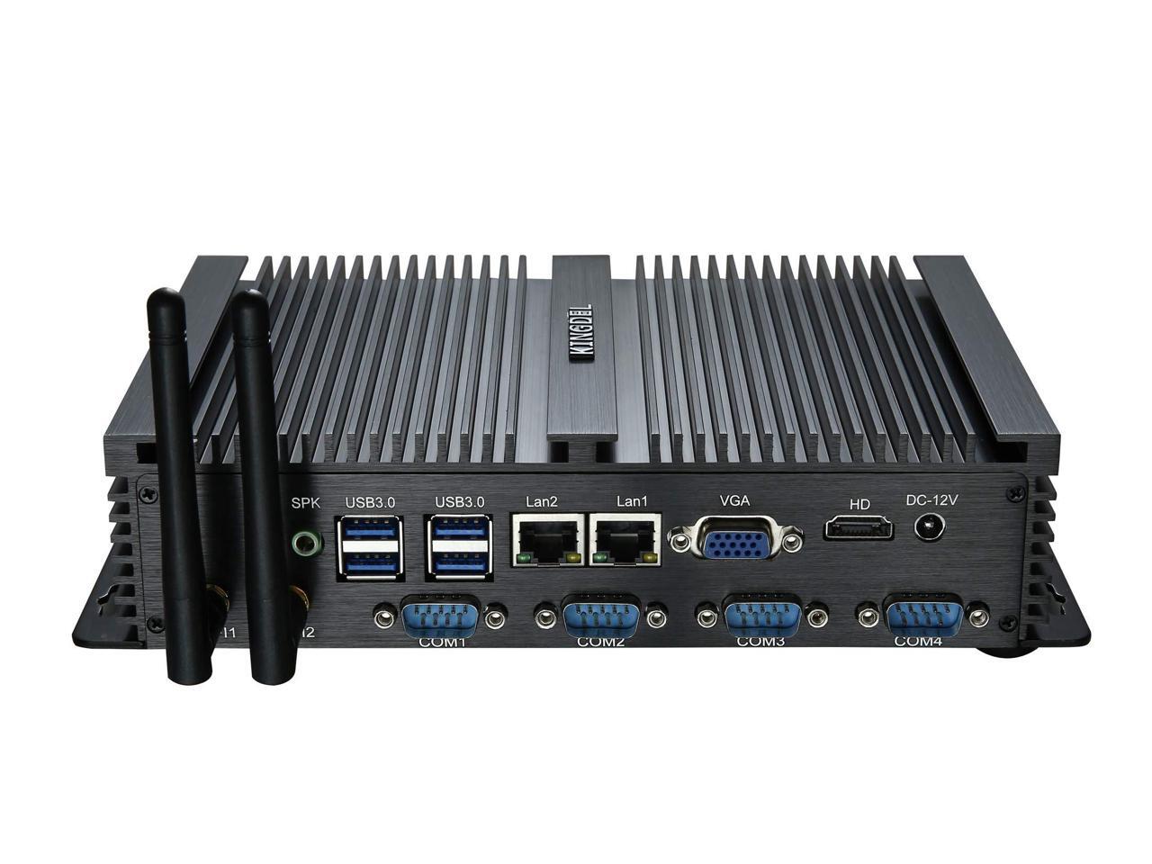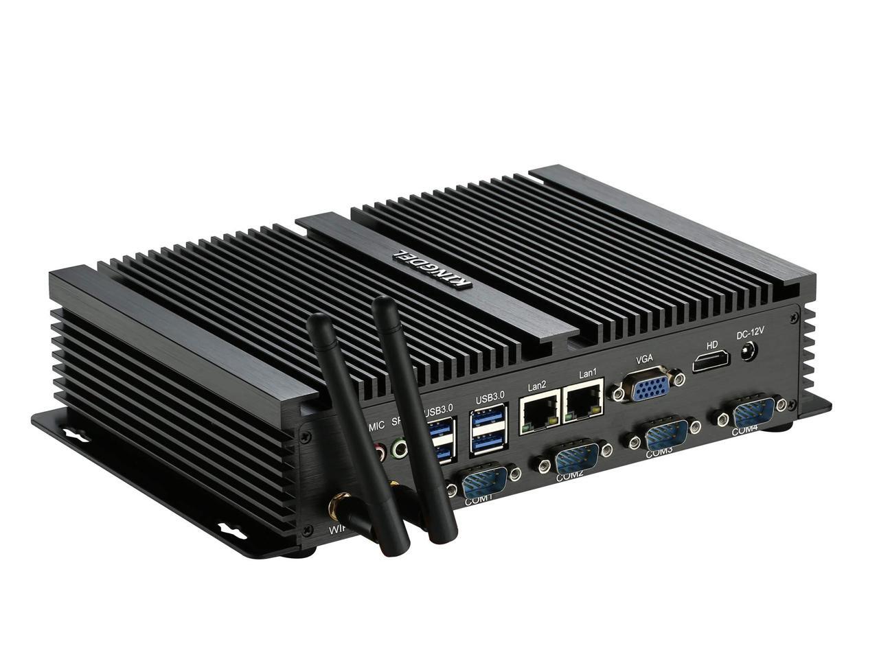 KINGDEL Powerful Mini Desktop Computer, Fanless Industrial PC, i5 Dual Core CPU, 8GB RAM, 256GB SSD, 2xNICs, 4xUSB 3.0, 4xCOM RS232, HD Port, WiFi, Metal Case, Silent Working