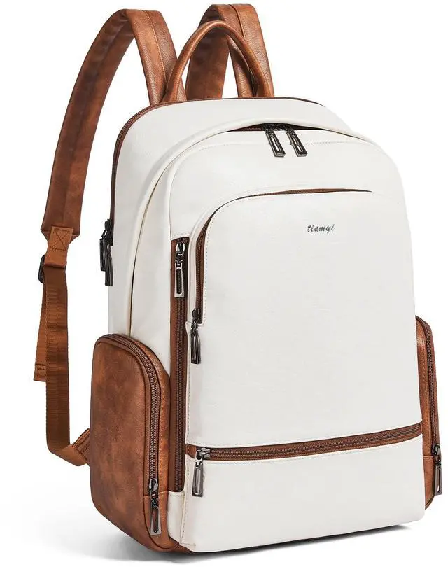 Independent Laptop Compartment :The vegan leather backpack has a 15.6 inch dedicated laptop compartment with cushioned cotton sewn around, it maximizes physical protection of your electronic devices. And double zipper opening design is easy to access and store the laptop, making it very convenient to store or take out.