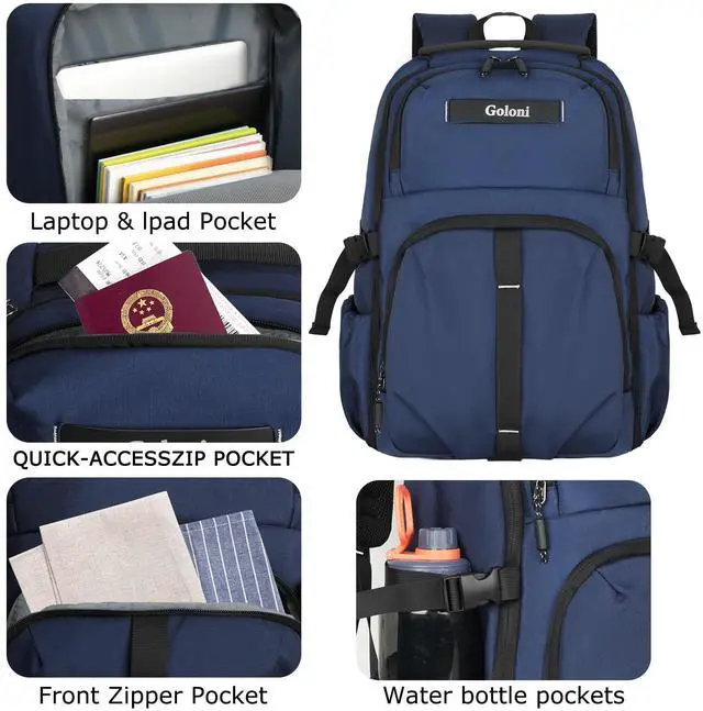 Goloni Travel Laptop Backpack for Men & Women, Airplane Approved 35L Carry-On Backpack with 15.6 Inch Laptop Compartment, Water-Resistant Business Backpack, Bookbag for Travel, Workl, Blue