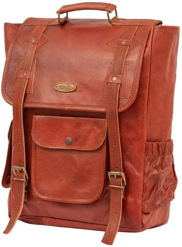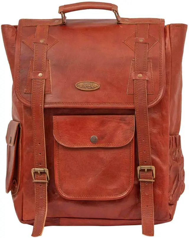 Stylish and rugged leather computer backpack : Handmade of premium high-quality materials, including top quality goat leather, brass metal buckles and full grain leather handle strap to survive the elements and years of wear and tear. This Vintage backpack for women Comes with easy open buckles.