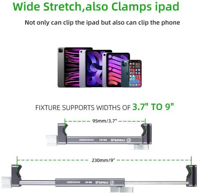 It can satisfy any viewing angle and bring you the ultimate viewing experience! The tablet holder fits any tablet/phone with a screen size between 4 inches and 12 inches, or a tablet/phone with a width between 5.3 inches and 11.8 inches. Compatible with Samsung Galaxy Tab 4 3/ iPad Mini/iPad Air 2 /iPad Air/iPad 4/iPad 3/ iPad 2 iPad Pro. Recommended for business or personal use!