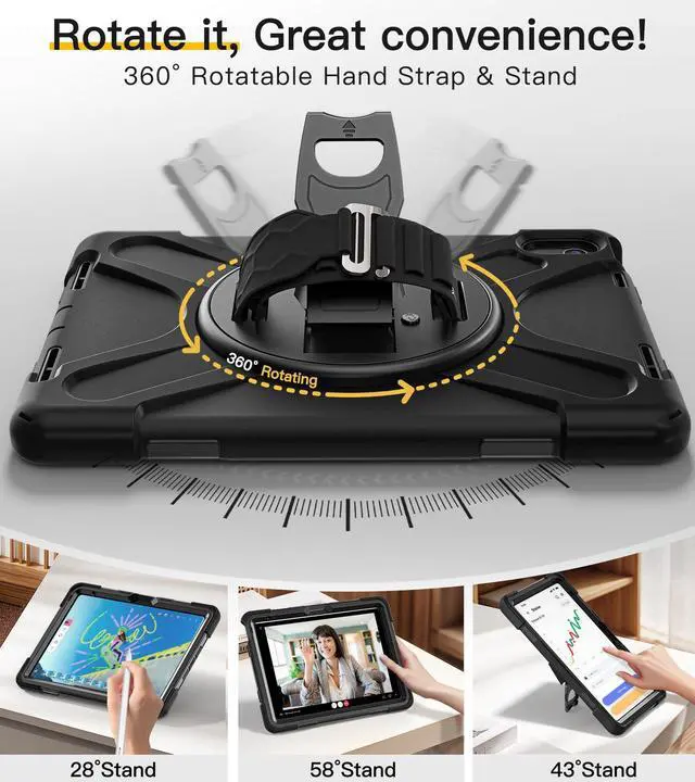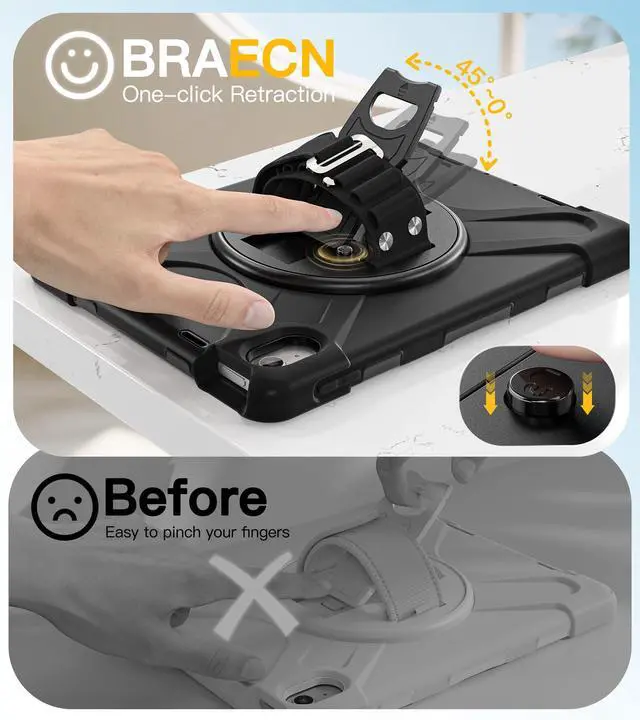 [360°Rotating Anti-Slip Hand Strap; Stand with One-Touch Retract Button]With the rotating system as well as kickstand and Silicone handle, it makes t