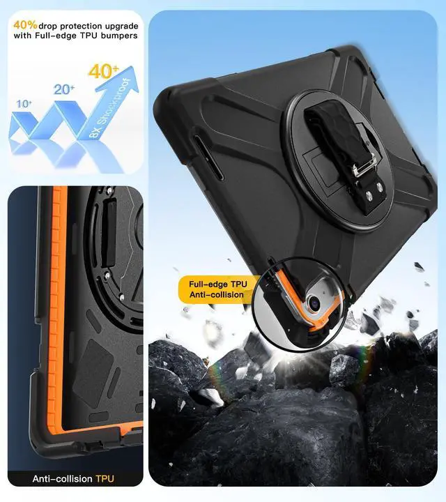 [Heavy Duty,Full-Body Military-grade Protection]This case for ipad 10th/11th features triple-layer construction and extra orange TPU cushioning strips, the outer silicone layer reinforces the dropproof performance of all four corners, plus there are 4x shockproof sponge pads on the bottom cover to prevent scratches to your tablet.Two types of front cover are included in the package.Provides the ultimate in protection and durability, safe for kids to use.