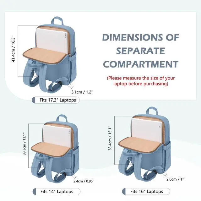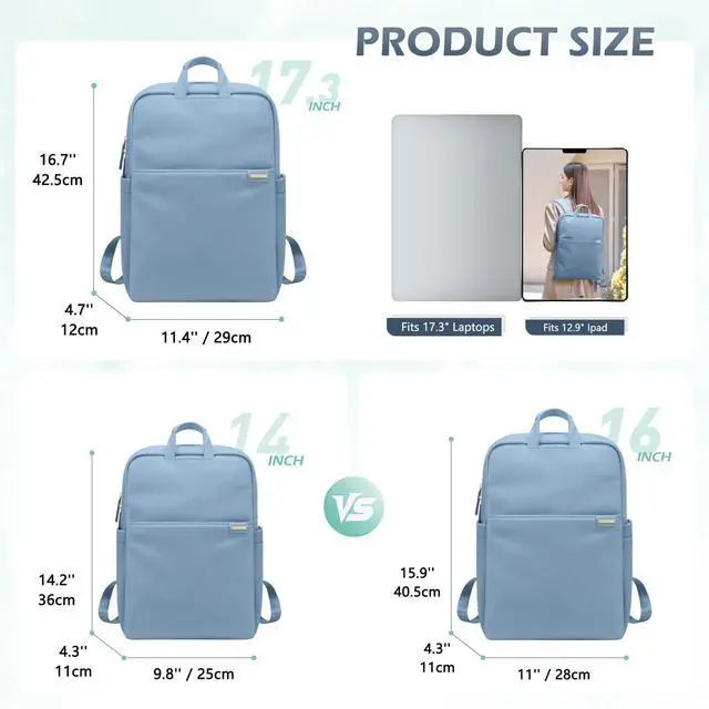 GOLF QUALITY Slim Laptop Backpack for Women, Lightweight Business Backpack for Women Computer Bag Purse for Commuting, Fit 17.3 Inch, Lake Blue