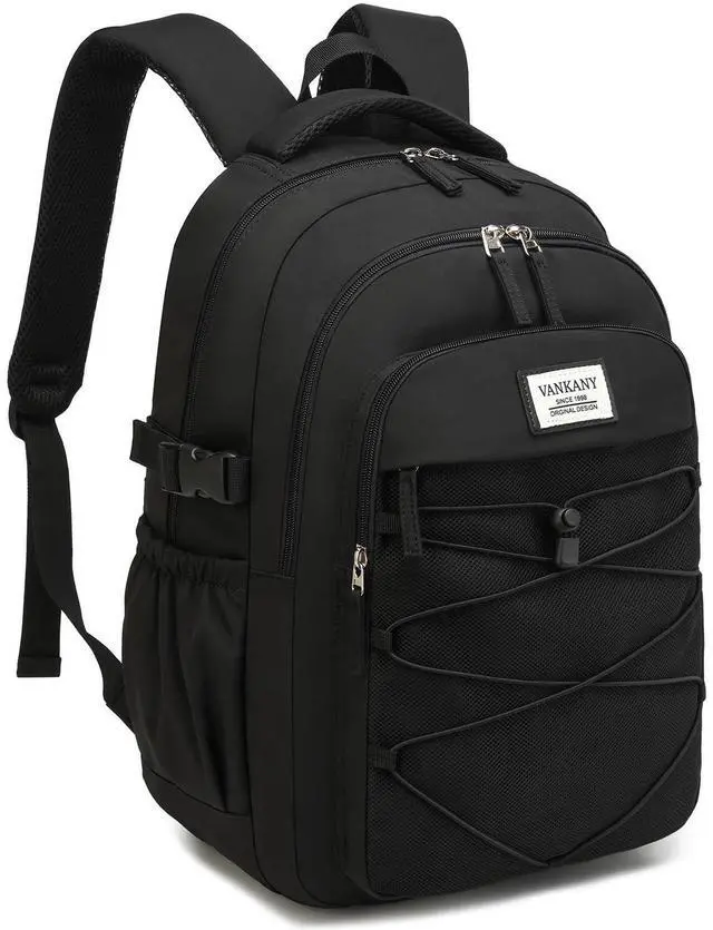 VANKANY Black Backpack for Teens, Girls School Bookbag Aesthetic 17.3 in Laptop Backpack for Commuter Women Students Middle High School, Black