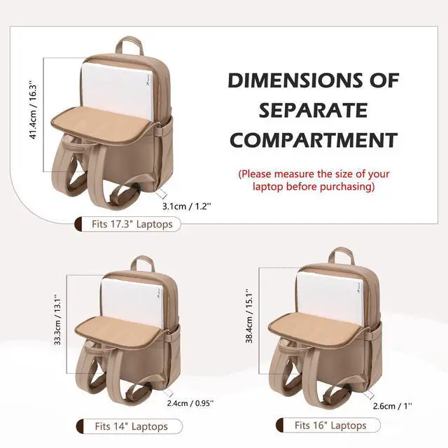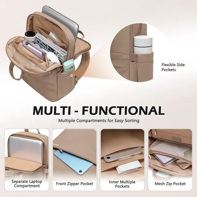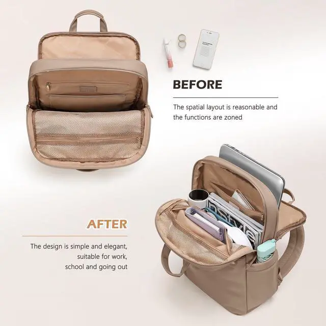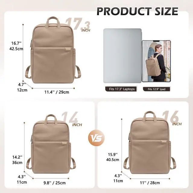 GOLF QUALITY Slim Laptop Backpack for Women, Lightweight Business Backpack for Women Computer Bag Purse for Commuting, Fit 17.3 Inch, Champagne Brown