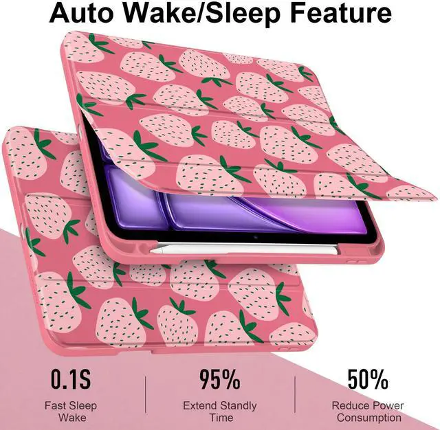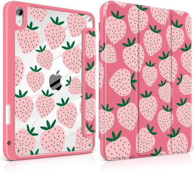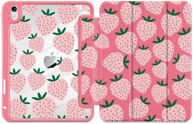 MEEgoodo Case for iPad Air 11 inch M3 2025 / M2 2024,for iPad Air 5th / 4th Generation Case 10.9 inch 2022/2020, Tablet Cover with Acrylic Transparent Back Shell, Minimalist Strawberry