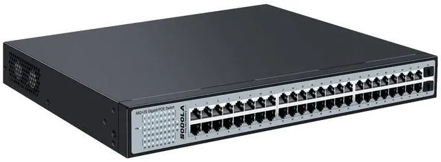 SODOLA 48 Port Gigabit PoE Switch, 600W Unmanaged Network Switch with 48 Port IEEE 802.3 af/at PoE, 2 x 1G SFP, Metal Rackmount Unmanaged Plug and Play Power Over Ethernet Switch