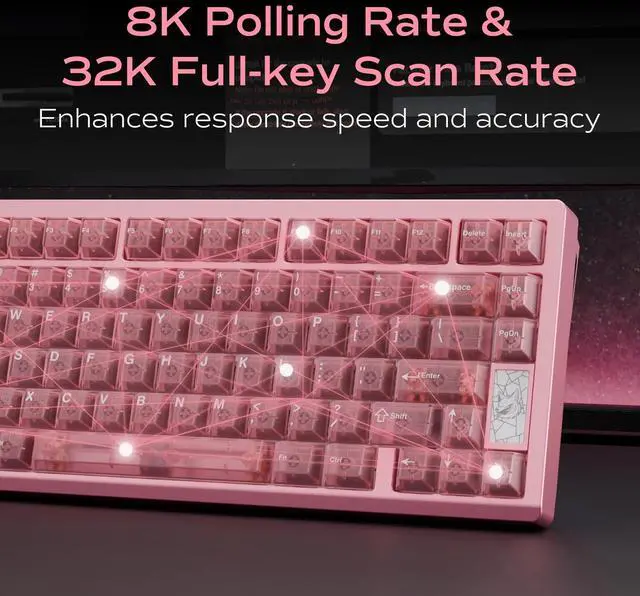8000Hz Polling Rate: The Slice75 rapid trigger keyboard boasts an 8000Hz polling rate and 32K scanning rate that effectively reduces keyboard latency to a mere 0.125ms. Say goodbye to input lag and take control of speed, your esports performance will be fast responsiveness. For gamers, performance is always more important than anything else