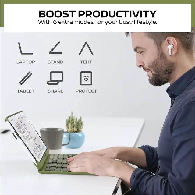 Mechanical keys& Precision TrackpadFeatures a near silent full QWERTY keyset and a large area clickable trackpad which allows you to precise navigation and control the cursor like a laptop, no need have to touch the screen or additional mouse. Perfect for working, writing, reading or watching videos. The trackpad can be locked/unlocked by pressing Touchpad key.
