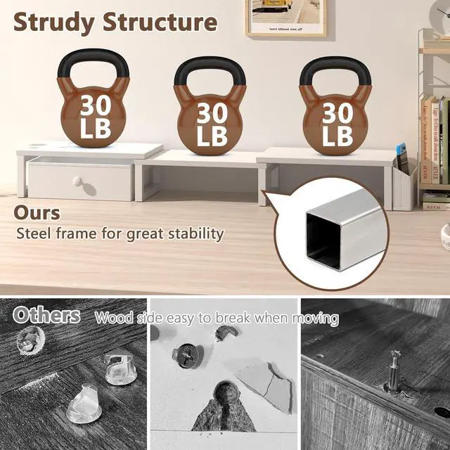 [Smart and Adjustable] Our computer monitor stand adopts a telescopic design and can be adjusted from 32 inches to 45.5 inches. It can easily match whether it is a compact desk or a spacious workbench. With the multi-angle rotation function, you can always maintain the best v