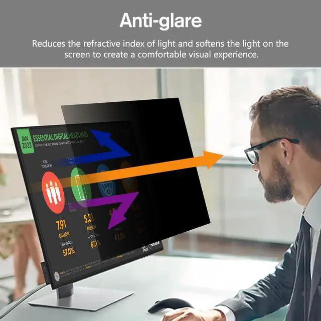 Anti Glare: The privacy screen protector is made of imported filtering optical material, which can effectively filter UV rays and harmful light. It can relieve and fatigue caused by working in front of the monitor for a long time. It also reduces the refractive index of light, resists glare, s