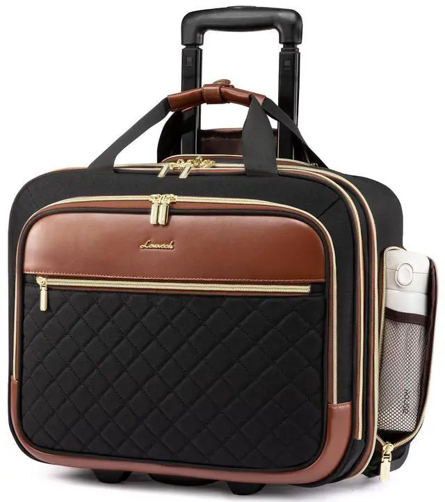LOVEVOOK Rolling Laptop Bag Women, 17.3 Inch Laptop Briefcase with Wheels, Soft Sided Underseat Carry On Luggage Personal Item Suitcase for Work Travel Business, Black Brown
