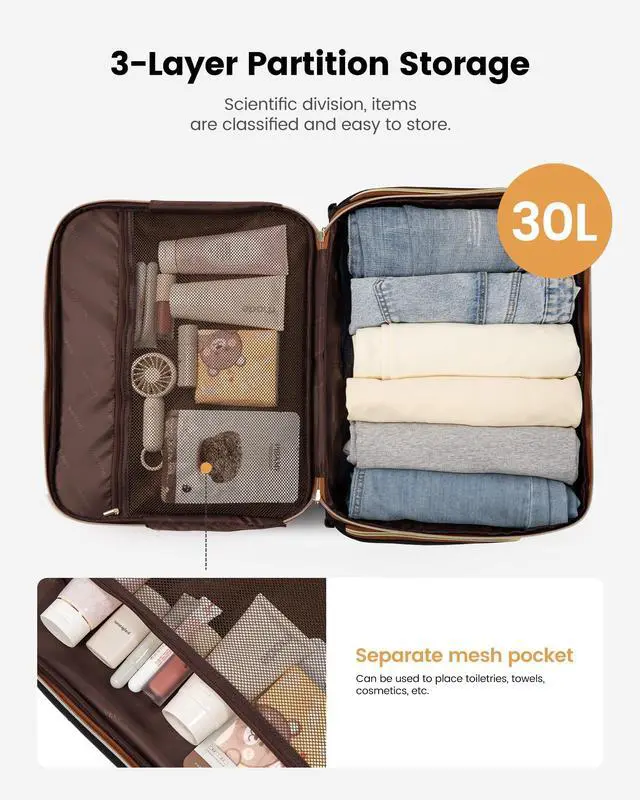 Durable Telescopic Handle & Silent WheelsThis carry on luggage for women features a durable aluminum telescopic handle. Wear-resistant high-density silent rubber wheels ensure quiet gliding even on bumpy roads.