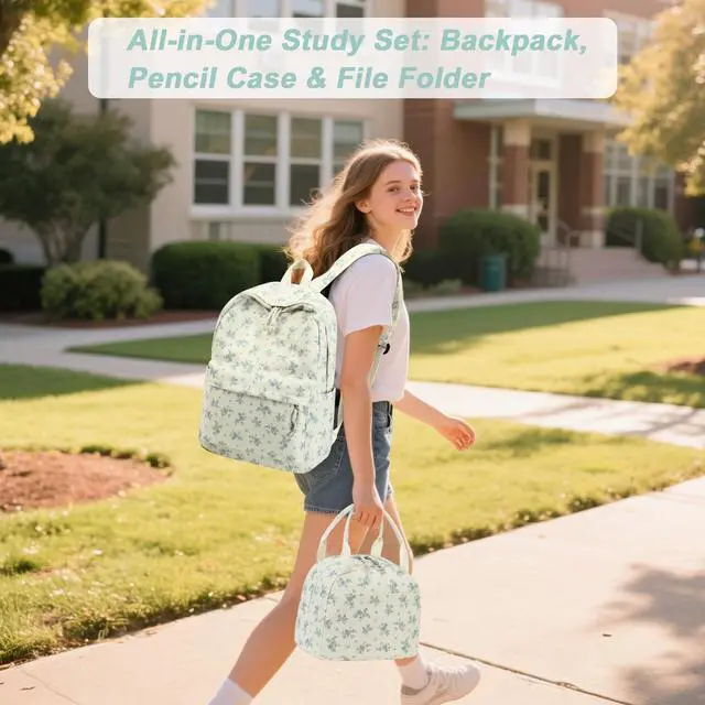 Multiple pockets and compartments.This girls backpack has a roomy main pockets, which can carry all of your textbooks, lunch, binders anything you may need,especially the compartment for large laptop. The front pocket can put your pens, keys, and wallets.The two side pockets can put a water bottle,selfie sticks,flashlights or umbrella.Its easy to keep everything organized with so many pockets in it.
