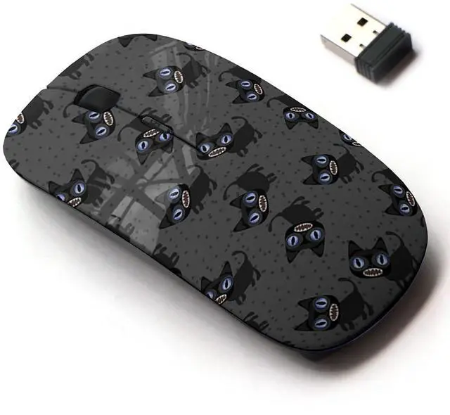 2.4G Wireless Mouse with Cute Pattern Design for All Laptops and Desktops with Nano Receiver - Funny Black Cats on Halloween