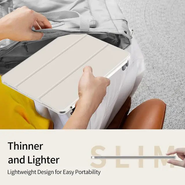 KTGGHG Strong Magnetic Case for iPad Air 11-Inch M3/M2 2025/2024, iPad Air 10.9-Inch 5th/4th Generation 2022/2020, Slim Folio Smart Cover with Hard Back Shell, Lightweight&Auto Wake/Sleep, White Cream