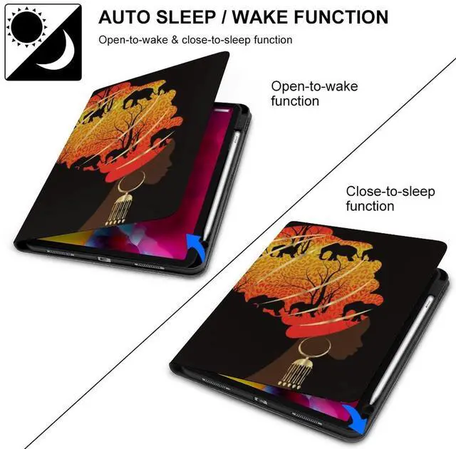 The Niapessel iPad case provides you with two standing angles to meet the needs of watching or writing the iPad; When the cover is opened/closed, the front cover can automatically put the tablet in the sleep/wake state.