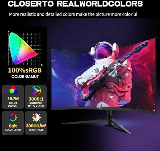 ZZA 24 Inch Gaming Monitor:The curved monitor uses a VA panel, up to 200 Hz refresh rate,computer screen with an Aspect ratio of 16:9. provide faster and smoother image changing than the standard, reducing screen tearing. The pc monitors for business office, study, and entertainment