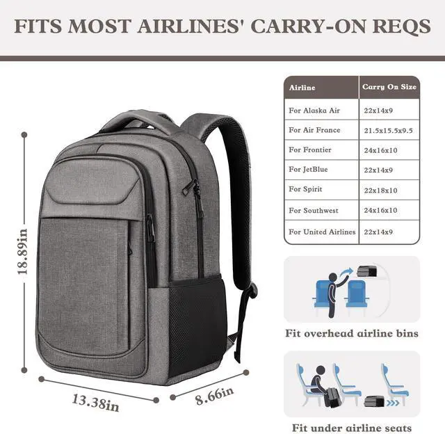 FUNCTIONAL & SAFE: A luggage strap allows School computer backpack fit on luggage/suitcase, slide over the luggage upright handle tube for easier carrying. The Laptop backpack With a hidden anti theft pocket on the back protect your valuable items from thieves. This Laptop backpack is well made for international airplane travel and day trip as a travel g