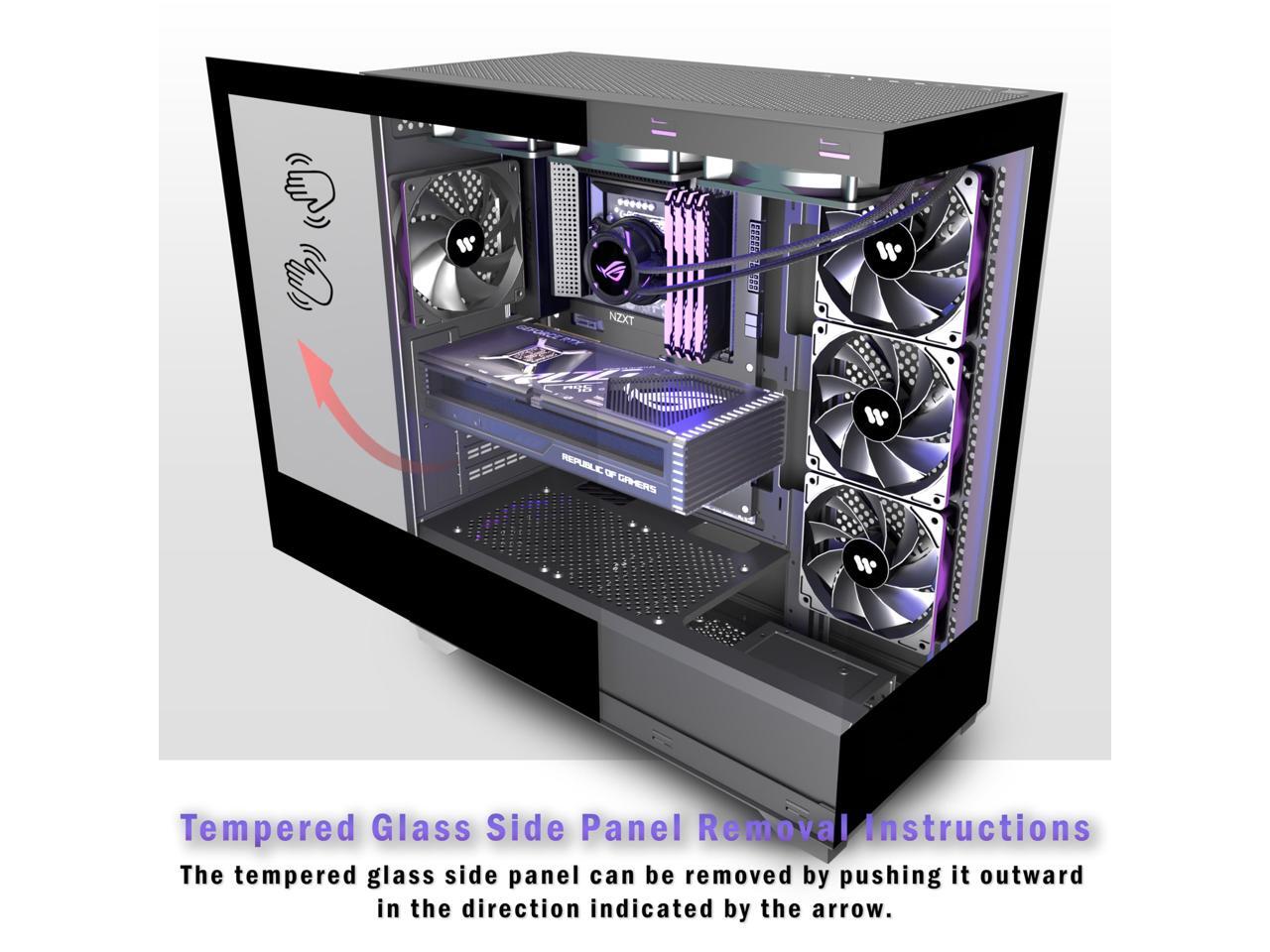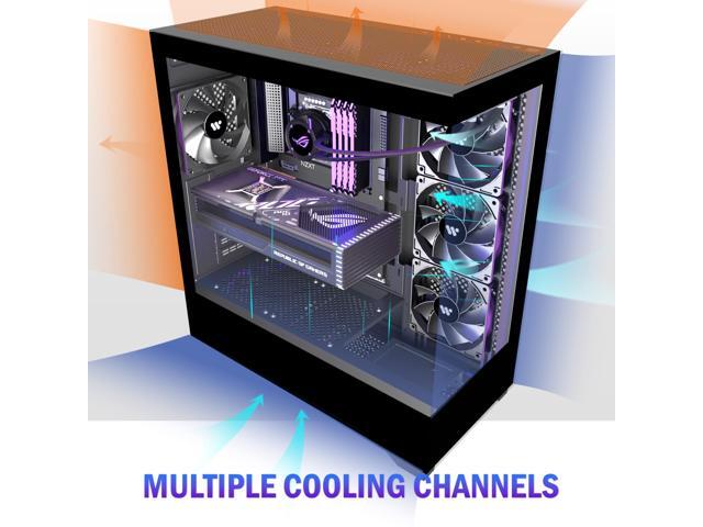- [Panoramic Design with 270°Wide Angle View ]-- The 270°panoramic mid tower case features fully glass-covered front and side panels, providing a clear view of internal hardware. Diamond cut angles offer a transparent and aesthetically pleasing display, creating a unique visual effect;providing great comfort for office/gaming environments!