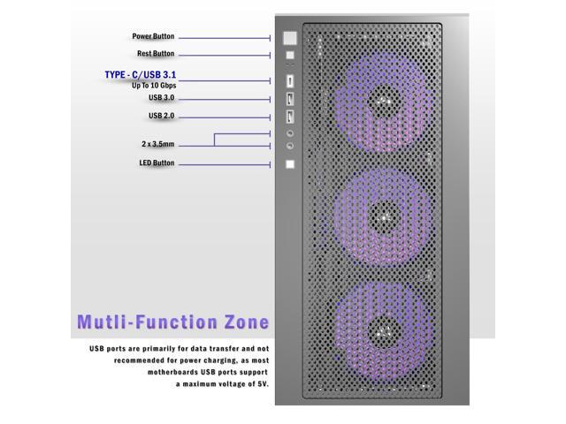 - [Upgrade High Speed IO Panel ]-- KEDIERS PC case is rich in external interfaces to increase the cost, configured with USB 3.0 and TYPE-C high speed interfaces to facilitate the connection of various new standard devices, enjoy higher transfer rates and save waiting time; enjoy the wonderful experience brought by higher power supply. The Reset button and AUDIO interface are fully configured to meet the multi-functional needs of daily office and gaming.