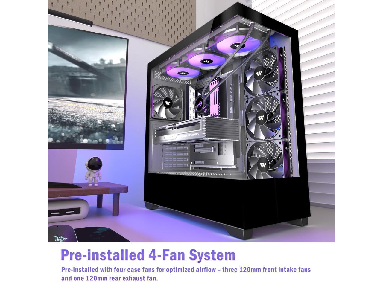 KEDIERS PC CASE ATX 4 Fans Pre-Installed, Type-C Mid Tower Computer Case with Full-View Dual Tempered Glass, Gaming PC Case,Black,P4