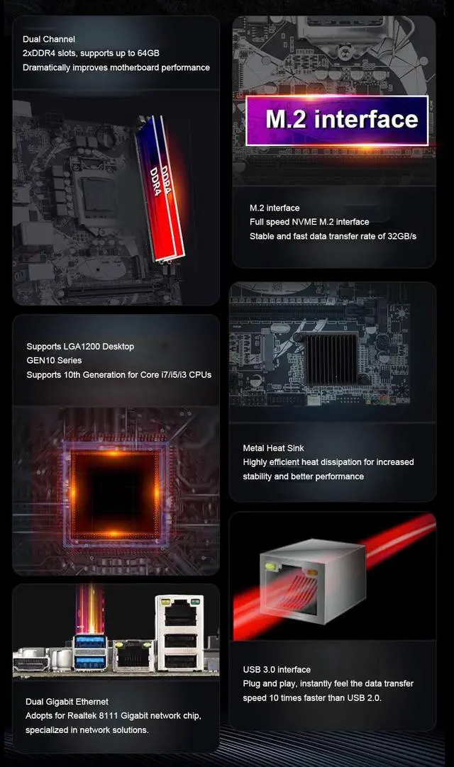 Heayzoki B460M Motherboard, PC Desktop Mainboard, Channel DDR4 LGA 1200 2 Gigabit NIC Support HD Multimedia Interface SATA3.0 Mining Mainboard for Gaming