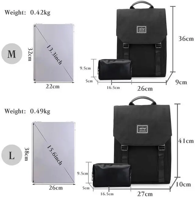 Large backpack, can store laptop, books, notebooks, umbrellas, and water bottle, which is very friendly to office worker.