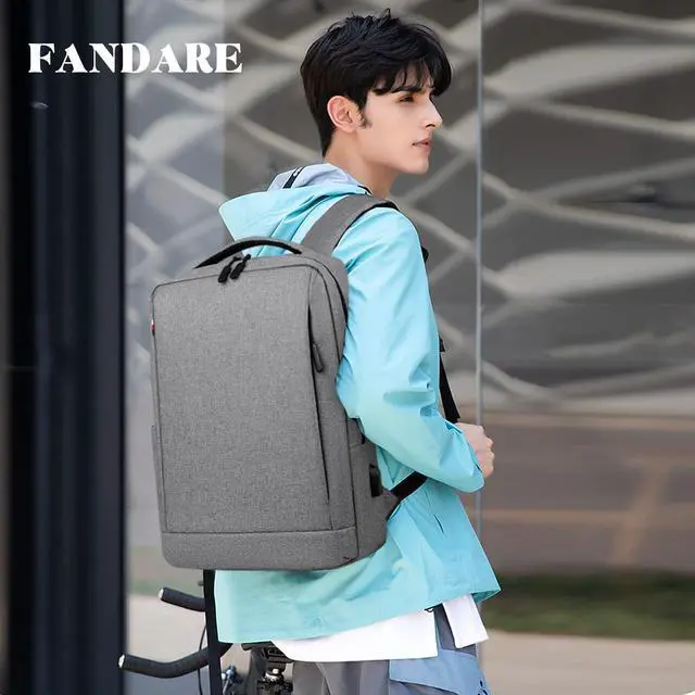 FANDARE Laptop Backpack Business Daypacks Travel Large Backpack with USB charging port Bag fits 15.6 Inch Laptop Bookbag for Men Waterproof Rucksack Light Grey A
