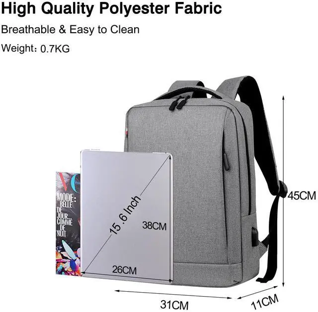 Roomy & Organized Pockets - Dimension: 31x11x45 cm(Length* Width*Height). Main Layer:independent laptop +zipper pocket+ open pocket+ pen pocket+other capacity; Extreal: front zipper pocket + side pocket. One spacious laptop backpack can store 15.6 inch laptop, supplies, travel accessories, clothes,books,etc.