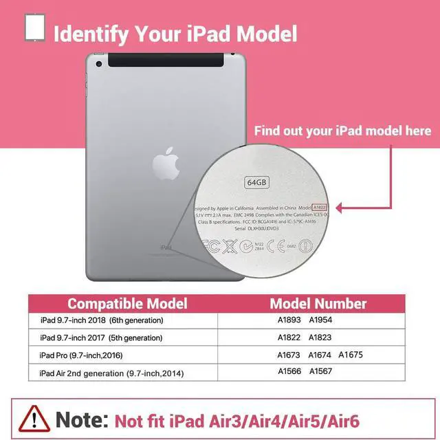 Compatibility: Designed specifically for 9.7" iPad 6th Generation 2018 (Model: A1893, A1954 ), iPad 5th Generation 2017 (Model: A1822, A1823), iPad Pro 9.7 inch 2016 (Model: A1673, A1674, A1675), and iPad Air 2 2014 (Model: A1566, A1567). Please check back bottom of your iPad to find the model number. The Screen Protector and Stylus are NOT included