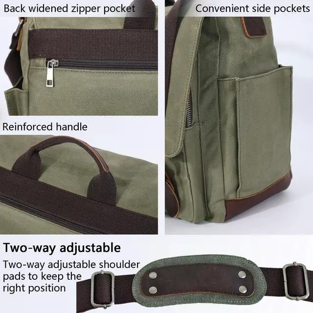 DIMENSIONS - The external dimension of this canvas bag is 15.7x12.6x5.1in, allowing 1-2cm error. Item weighs 2.9 lbs (1.3 kg);It is a messenger bag which is good for daily, college, business, overnight, etc.