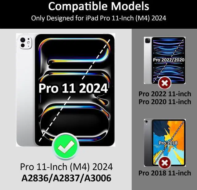 [Compatibility] Jarviwiin case only fit for iPad Pro 11 inch M4 2024(Model Number: A2836/A2837/A3006). Not compatible with any other devices.Please check the model number on the back of your iPad.