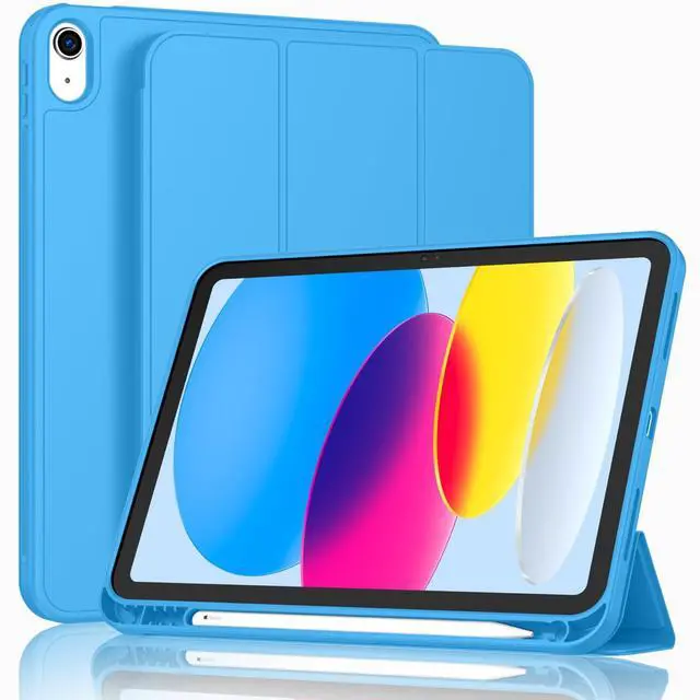 ToaPoia Case for iPad (A16) 11 Inch 2025/iPad 10th Generation 10.9 Inch 2022, Slim Trifold Stand Protective Cover with Pencil Holder and Soft TPU Back,Support Auto Sleep/Wake (Ocean Blue)