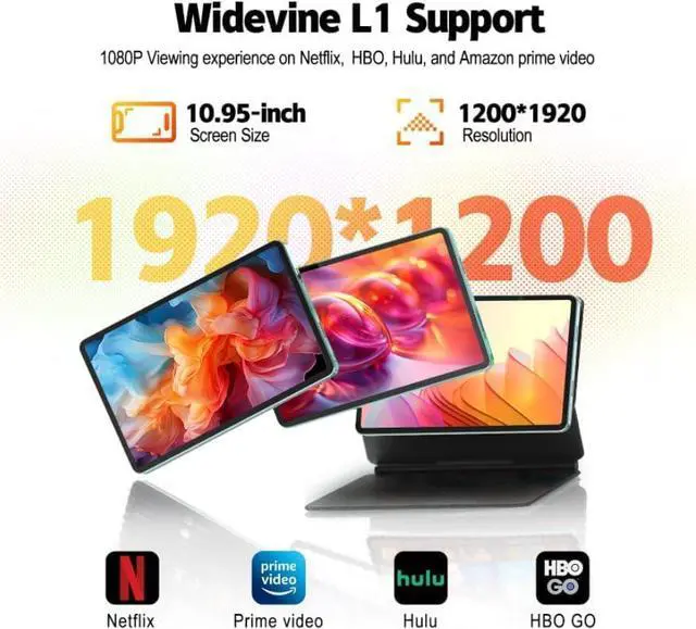 : The newly upgraded 11 inch tablet is equipped with a 1920x1200 high-resolution touch screen, which has a larger screen, clearer and brighter images, and a wide viewing angle for a more realistic viewing experience. The tablet is equipped with automatic brightness adjustment and anti-blue light function to protect your eyesight, so that you can feel more comfortable.
