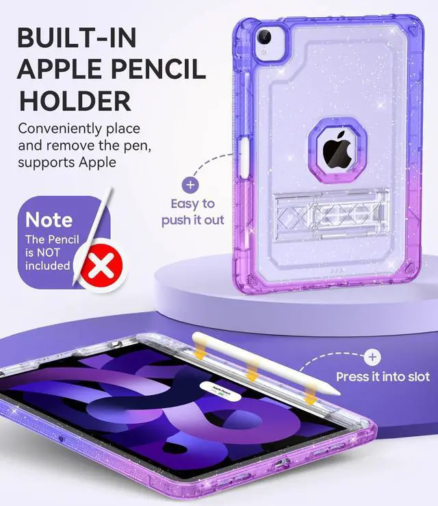 ZoneFoker Case for iPad Air 5th/4th Generation Case (2022/2020) 10.9'', for iPad Pro 11 Inch (4th/3rd/2nd/1st Gen), Hard Slim Cover for iPad Air 5 4 th with Pencil Holder/Stand, Purple to Blue Glitter