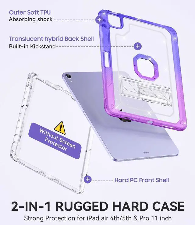 Shockproof Rugged Design: 2 In 1 structure of hybrid material backplane and hard front casing effectively protects your ipad air case 4th generation & ipad 11 pro case from scr
