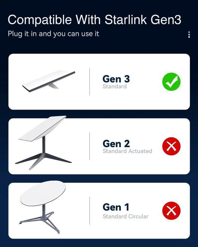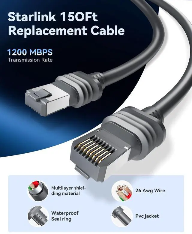 Compatible with Starlink Gen 3: This 150FT Starlink cable Gen 3 is fully compatible with Starlink Gen 3 Satellite systems. Whether used as a Starlink cable extension or Starlink replacement cable, it delivers seamless connectivity for both indoor and outdoor setups