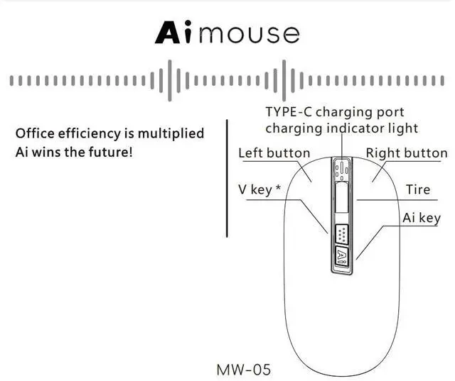 YOWOCHUNG Series MW-05 Wireless 2.4G +Bluetooth Connection Rechargeable Silent Slim Dual voice typing AI Smart Mouse for Laptop/iPad Tablet/Apple Mac Book/PC (White)