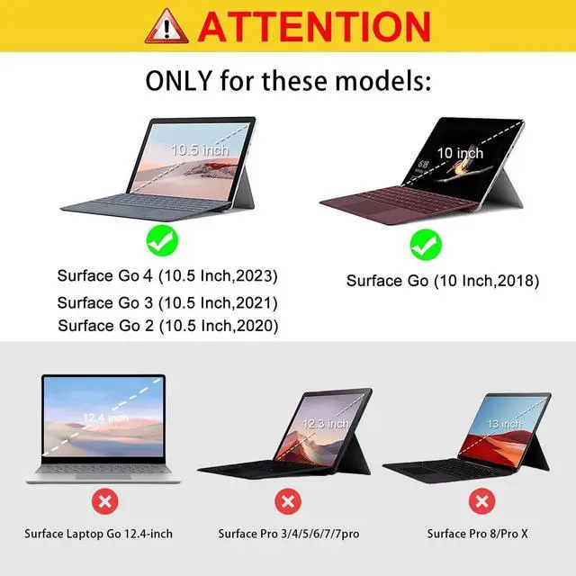 Keyboard case compatible with Microsoft Surface Go 4 (2023) 10.5 Inch / Microsoft Surface Go 3 10.5 Inch 2021/ Microsoft Surface Go 2 10.5 Inch 2020 / Microsoft Surface Go 10 Inch 2018 Release Tablet. Not Compatible with Microsoft Type Cover Keyboard.