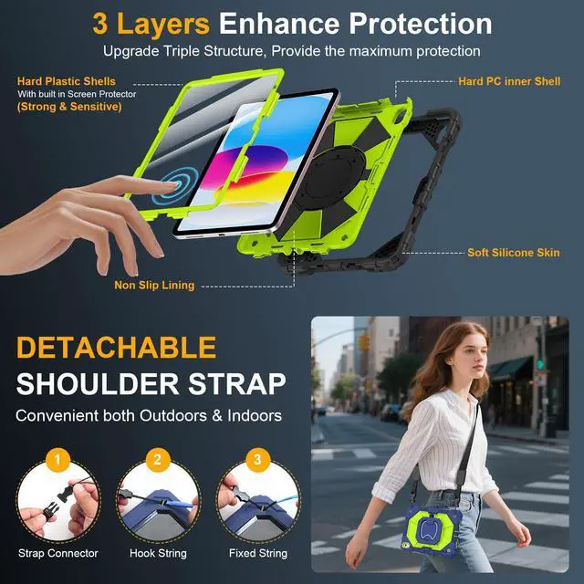 Adjustable shoulder strap and pencil holder: Auorld Case for iPad 11th/10th Gen 11/10.9 inch case 2025/2022, provides ultimate comfort when carrying; you can even attach it to a car headrest for hands-free viewing in the back seat, making it ideal for work, study, and travel. The protective case designed for the 11th/10th generation iPad (11/10.9 inches), models 2025/2022, comes with a pencil holder