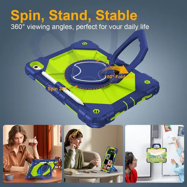 360° Rotating Stand and Folding Handle: Auorld Case for iPad 11th/10th Gen 11/10.9 inch case 2025/2022, featuring a multi-functional handle that allows for 360° rotation and 180° folding. It provides multiple angles between 25-85 degrees, enabling easy viewing, typing, or drawing, whether in a horizontal or vertical orientation